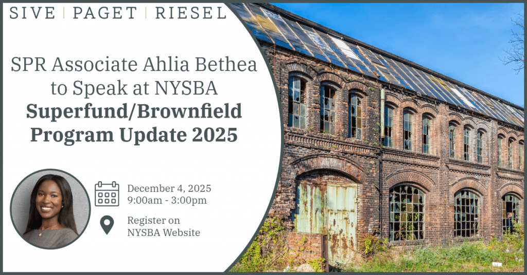 Read MoreSPR Associate Ahlia Bethea to Speak at NYSBA Superfund/Brownfield Program Update 2025